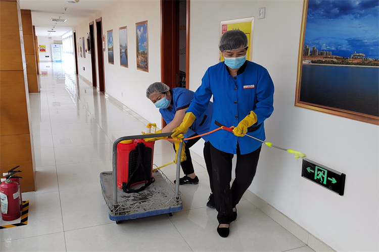 為積極應(yīng)對疫情,物業(yè)公司在各小區(qū)內(nèi)全面開展高強度高頻次的消毒服務(wù),用消毒水細(xì)心對小區(qū)樓宇門、公共通道、門把手、電梯等公共設(shè)施進(jìn)行滅菌,在垃圾桶周圍、樓道、下水道、車庫等關(guān)鍵區(qū)域噴灑消毒液,有效阻斷病毒的傳播途徑。