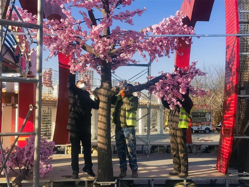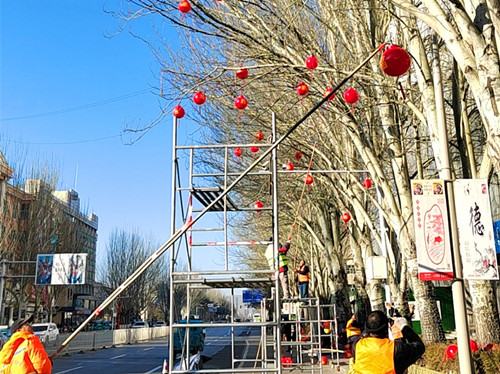 隨著2023年春節(jié)臨近,為營造歡快、喜慶、祥和的節(jié)日氛圍,集團公司按照東勝區(qū)委、政府的安排部署,遵循“突出特色、塑造精品、打造亮點、節(jié)約耗材,綠色環(huán)?!钡乃悸?,對東勝城區(qū)主干道、公園廣場、四大出入口等重點區(qū)域,以樹木燈光裝飾、地面景觀插飾的方式進行節(jié)日裝點,塑造出科技、創(chuàng)新的城市韻味,同時在青銅器廣場打造互動區(qū),增強市民的交互體驗感,全力打造具有濃郁地域文化特色的城市夜。
