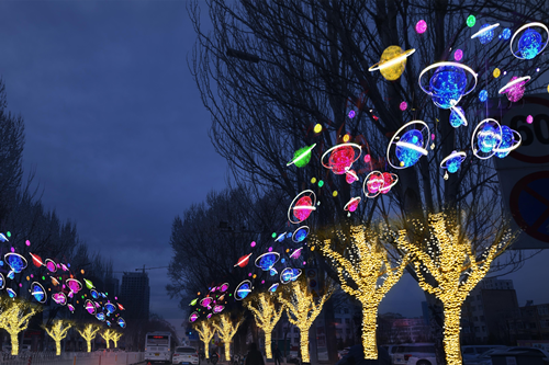 今年東勝區(qū)春節(jié)亮化工程繼續(xù)以“日出東方,美不勝收”為主題,采用中國傳統(tǒng)文化和元素為基礎(chǔ)的國潮風(fēng),集合時尚、流行等元素于一身的設(shè)計,將傳統(tǒng)和現(xiàn)代、東方美和科技美結(jié)合在一起,通過各種燈光的搭配和布置,智能互動、一街一景、主次分明,以點(diǎn)串線、以線帶面、突出重點(diǎn),形成多層次、立體化的燈飾景觀,將道路裝點(diǎn)得美輪美奐,實(shí)現(xiàn)主要街道春節(jié)亮化全覆蓋。