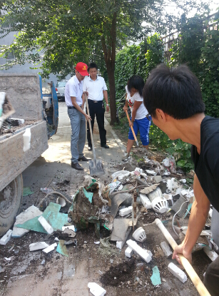 這次物業(yè)包干活動(dòng)主要針對(duì)小區(qū)施工后的垃圾、廢材料清理。由于天氣干燥,在清掃現(xiàn)場(chǎng)沙子、水泥時(shí)灰塵非常大,但我們的包干人員不嫌臟、不矯情,用水將地面打濕后進(jìn)行清理,避免造成二次污染。并在物業(yè)公司的協(xié)助下聯(lián)系到了垃圾車,將隨地堆放的施工垃圾統(tǒng)一裝車處理,還業(yè)主一個(gè)出行方便、干凈整潔的生活環(huán)境。