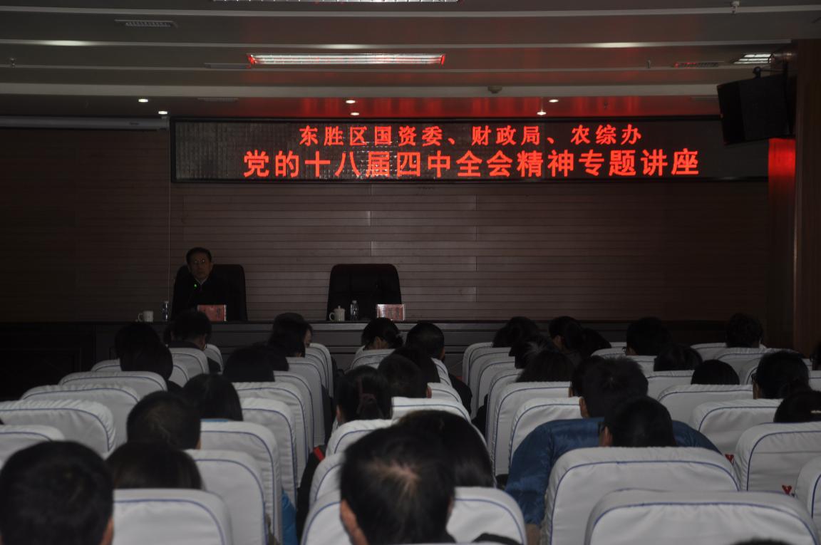 為深入學習宣傳貫徹黨的十八屆四中全會精神,進一步提高黨員干部對依法治國的重要性認識。12月18日下午,弘基煒業(yè)控股集團全體黨員、入黨積極分子、環(huán)節(jié)以上干部參加了由東勝區(qū)國資委、財政局、農(nóng)綜辦聯(lián)合舉辦的專題學習會,會議邀請了東勝區(qū)講師團王華團長作“黨的十八屆四中全會精神”專題講座。國資委黨委書記王茂泉主持學習會。