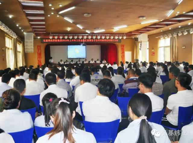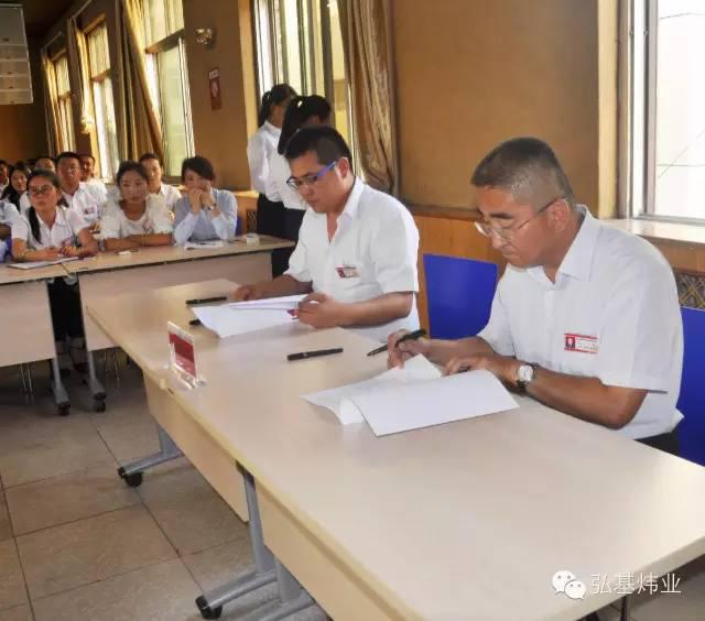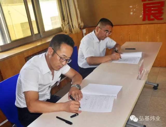 會議分三個議程:首先由各子公司負責人對2015年上半年工作做總結(jié)匯報;第二由弘基煒業(yè)控股集團總經(jīng)理李軍對集團本年度上半年工作做總結(jié)及對下半年的工作、經(jīng)營目標進行安排部署;最后,各子公司負責人與弘基煒業(yè)控股集團簽訂目標責任狀,明確了全年安全責任目標、經(jīng)營目標等。