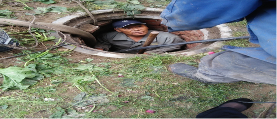 找到原因后的趙師傅準(zhǔn)備好雨鞋、水泵等工具馬上開始了下井作業(yè)。由于井內(nèi)作業(yè)空間非常有限,工具并不能一次性帶下來,還要不斷忍受惡臭的的侵襲,這也為維修增加了難度。這時,業(yè)主委員會的張主任聞訊趕來,看到此情此景,不由分說便要下井幫忙。由于井下不僅臟臭,而且存在一定危險,周圍的人紛紛勸阻張主任的“沖動”行為,然而張主任的一句話卻深深感動了大家:“小趙一個人不得臭暈過去,我們兩人交替下井,快還不累?!?