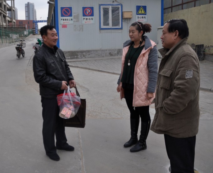 2014年1月24日,集團(tuán)公司副總經(jīng)理王春光、工會(huì)主席李冉淇、煒業(yè)萬(wàn)邦水泥有限公司總經(jīng)理祁來(lái)柱結(jié)對(duì)去往各項(xiàng)目工地,看望慰問(wèn)春節(jié)期間堅(jiān)守在崗的值班人員,并給他們送去了節(jié)日的祝福。